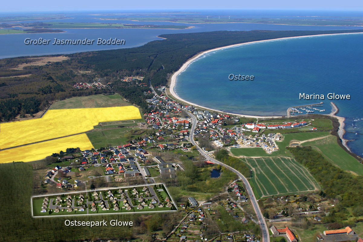 | Der staatlich anerkannte Erholungsort »Glowe liegt im Norden der »Insel Rügen, an der Schaabe, zwischen der Ostsee im Norden und dem Großen Jasmunder Bodden im Süden.